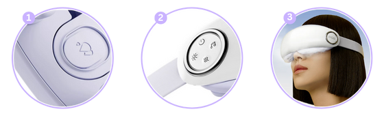 OPZETTEN: Zet de bril op en kies jouw gewenste stand (stoom en/of massage - warm/koud).